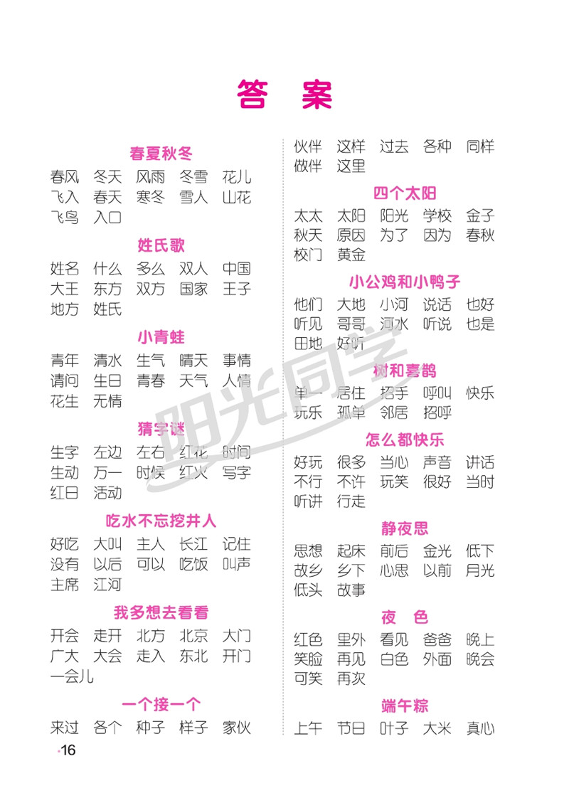 2021年春阳光同学默写小达人一年级下册人教版语文同步练习册宇轩阳光同学默写能手PDF,TXT迅雷下载,磁力链接,网盘下载